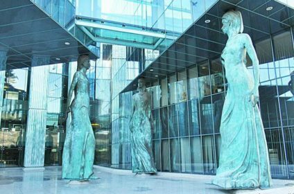 Projekt gmachu miał – zdaniem architektów – „ilustrować rolę Praw w życiu człowieka”. Stąd pomysł na „Kolumny Prawa”, na których zostały odlane wybrane cytaty z prawa rzymskiego (i nie tylko). Zestaw 86 paremii prawniczych przygotował zespół romanistów pod kierunkiem profesora Witolda Wołodkiewicza z Uniwersytetu Warszawskiego. Pod tekstem każdej z łacińskich sentencji zamieszczony został przekład na język polski oraz nota źródłowa. Paremie znajdziemy również na kolumnach głównego holu wewnętrznego sądu.