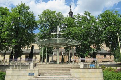 Przed ponad 900 laty, w miejscu gdzie dziś leżą Kielce, rosły nieprzebrane lasy pełne dzikiej zwierzyny. Nic więc dziwnego, że przyciągały one licznych myśliwych. Polował tu także syn Bolesława Śmiałego, Mieszko. Podczas jednego z takich polowań książę tak się zatracił w pogoni za zwierzyną, że odłączył od swoich kompanów i zgubił drogę. Po całodziennych trudach i bezowocnych poszukiwaniach drogi powrotnej do obozu, umęczony książę wyjechał na jakąś polanę i wyczerpany zasnął w trawie. Przyśnił mu się wówczas dziwny sen, w którym to został napadnięty przez zbójców, a ci pochwyciwszy go, zaczęli mu wlewać do ust truciznę. Choć książę walczył dzielnie, wkrótce jednak zaczął tracić siły i nadzieję na ocalenie. Wówczas objawił mu się św. Wojciech, który uniósł pastorał i na ziemi nakreślił kręty szlak, który przemienił się w strumień wody. Gdy Mieszko obudził się, nieopodal ujrzał źródło. Woda w nim była smaczna, przejrzysta, taka jak we śnie. Poczuł przypływ nowych sił i szybko odnalazł swój orszak. Odjeżdżając z polany, Mieszko zauważył ogromne, białe kły nieznanego zwierza, być może dzika. Zapowiedział, że wybuduje tu gród z kościołem. Niedługo potem w sercu puszczy wzniesiono osadę, którą nazwano Kielcami, a płynącą przez nie rzekę – Silnicą.