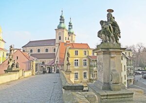 Kościół Wniebowzięcia NMP (PK 20). Ta przepiękna świątynia jest najstarszym zachowanym kościołem Kłodzka. Pierwsze wzmianki o budowie kościoła w tym miejscu pochodzą jeszcze z 1194 r. Przypuszczalnie był to wtedy jeszcze bardzo skromny, drewniany kościółek. Kamień węgielny pod obecną budowlę położyli w 1344 r. kłodzcy joannici. Jednak właściwa budowa kościoła rozpoczęła się dopiero po śmierci jego głównego fundatora – pierwszego arcybiskupa praskiego Arnosta z Pardubic. Umierając w 1364 r., zapisał on znaczne sumy pieniędzy na kontynuowanie budowy. Zmienne koleje losu, nieustanne wojny i pożary, jakie nawiedzały miasto sprawiły, że budowa kościoła stale się przedłużała. Ukończono ją dopiero w wieku XVI. W 1562 r. świątynię przejęli protestanci. Katolickie nabożeństwa powróciły do kościoła pod koniec XVI w. wraz ze sprowadzeniem do Kłodzka jezuitów. Po skasowaniu zakonu w 1776 r. kościół parafialny Wniebowzięcia NMP przez dłuższy okres pozostawiony był własnemu losowi. Dopiero w 1814 r. po restytucji zakonu świątynią na nowo zaopiekowali się jezuici, którzy pozostają w niej do dnia dzisiejszego.