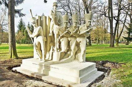 W latach 1891-1893 na terenie Komorowa władze carskie wzniosły koszary wojskowe, zwane „Sztabem Saltinowskim”, w których to zakwaterowano dwa pułki piechoty: 23 Niżowski Pułk Piechoty gen. feldmarszałka Sałtykowa oraz 24 Simbirski Pułk Piechoty. Równolegle z koszarami wybudowano osiedle rodzin wojskowych i cywilnych nazywane od nazwiska carskiego naczelnika powiatu – Kiryłówką. W okresie I wojny światowej koszary były zajmowane przez tylne oddziały walczących na froncie wschodnim wojsk niemieckich. Po odzyskaniu przez Polskę niepodległości budynki koszarowe przejęło, niejako z automatu, nowopowstające Wojsko Polskie. W roku 1926, po przewrocie majowym, z Warszawy do komorowskich koszar przeniesiona została słynna Szkoła Podchorążych Piechoty, która swoimi tradycjami nawiązywała do założonej w 1765 r. przez Stanisława Augusta Poniatowskiego Szkoły Rycerskiej Korpusu Kadetów. Koszarom nadano wówczas nowoczesny i estetyczny wygląd, wybudowano basen z kompleksem boisk sportowych, a także rozpoczęto wznoszenie hal sportowych. W okresie funkcjonowania w Komorowie SPP powstały także wszystkie pomniki nawiązujące swoimi motywami do chwały oręża polskiego. Inicjatorem ich budowy był ówczesny komendant szkoły płk dypl. Ludwik Bocianowski, a fundatorami słuchacze szkoły. Łącznie powstało 20 pomników, z czego większość przetrwała wojnę. Jedynie jeden z nich, Batory pod Pskowem, wysadzili stacjonujący tutaj do 1944 roku Niemcy, którzy omyłkowo wzięli go za inscenizację hołdu pruskiego. Dwa kolejne, w tym pomnik Józefa Piłsudskiego, zniszczono już po wojnie. W latach 1951-53 w Komorowie stacjonował pułk rezerwowy, a od 1953 r., jednostka służby topograficznej, która po dzień dzisiejszy zajmuje budynki koszarowe. W latach 1952-1958, w ramach odbudowy terenu, powstało osiedle mieszkaniowe przy ul. Kościelnej, a w 1961 r. Szkoła Podstawowa nr 4. Jednak dopiero w drugiej połowie lat 70. nastąpiła największa w okresie powojennym rozbudowa kompleksu koszarowego w Komorowie. Wybudowano wówczas między innymi: warsztaty samochodowe, stołówkę, budynek koszarowy oraz budynek Wojskowego Instytutu Astronomiczno-Grawimetrycznego z planetarium. Z kolei w ostatnich latach na swoje miejsce powrócił pomnik Józefa Piłsudskiego, powstało Mauzoleum im. Piotra Wysockiego oraz podjęto się renowacji Alei Królów i Hetmanów Polskich oraz Alei Powstania Listopadowego.