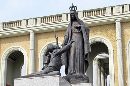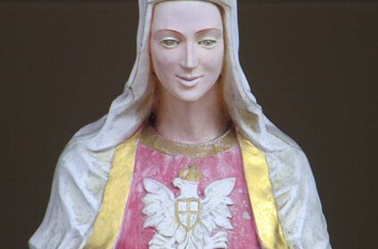 Historia objawień sięga początków XIX wieku, kiedy to żołnierz Tomasz Kłossowski w 1813 roku brał udział w bitwie narodów pod Lipskiem. Tomasz na polu bitwy został śmiertelnie ranny. Leżał na ziemi bez szansy na ratunek. Wtedy zaczął modlić się gorliwie do Matki Bożej, prosząc o pomoc, ściskając jednocześnie medalik, który nosił na szyi. Wówczas, według ludowego przekazu, zobaczył idącą po pobojowisku piękną kobietę w amarantowej sukni ze znakiem Białego Orła na piersi. Gdy podeszła bliżej, rozpoznał w niej Matkę Bożą. Maryja obiecała Tomaszowi, że wróci do domu. Poleciła jednak, aby po powrocie odnalazł wizerunek najwierniej ją przedstawiający. Powiedziała też, aby po znalezieniu wizerunku, umieścił go w miejscu publicznym, aby ludzie się o nim dowiedzieli. Kłossowski ocalał. Powrócił do ojczyzny, do Izabelina (wioska położona niedaleko Lichenia). Pracował jako kowal, ale – chcąc spełnić prośbę Matki Bożej – wiele pielgrzymował, aby odnaleźć obraz, o który Matka Boża go prosiła.