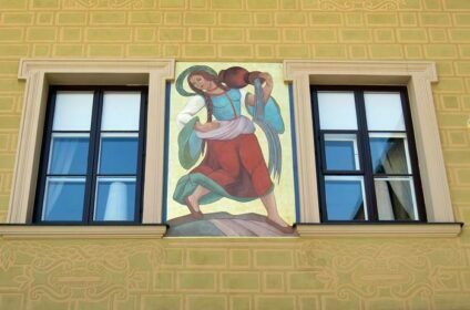 Sgraffito to jedna z technik dekoracyjnych malarstwa ściennego, polegająca na pokryciu muru kilkoma warstwami tynku o odmiennych barwach i na częściowym zeskrobaniu warstw górnych za pomocą ostrych narzędzi. W ten sposób, w wydrapanych partiach, odsłania się kolor warstwy dolnej i powstaje dwu- lub kilkubarwna kompozycja. Technika ta znana była już w starożytności, lecz upowszechniła się dopiero w renesansie, jako forma zdobienia elewacji budynków mieszkalnych. Warszawskie Stare i Nowe Miasto, jako zespół, było ozdabiane sgraffito dwukrotnie. Po raz pierwszy, w roku 1928 dla uczczenia 10. rocznicy odzyskania niepodległości. Drugi raz ozdobne elewacje pojawiły się w roku 1953 przy okazji odbudowy zniszczonych w czasie działań wojennych staromiejskich kamienic.