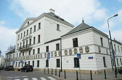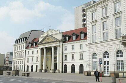 Plac Teatralny i Teatr Wielki. Plac powstawał w dwóch etapach. Około 1808 r. na miejscu zlikwidowanego targowiska Pociejów i rozebranego pałacu Pociejowskiego utworzono najpierw ogród, a później niewielki plac nazwany placem Pociejowskim. W 1825 r. rozebrano znajdujący się obok Marywil. Pozyskany teren wykorzystano pod budowę monumentalnego gmachu Teatru Wielkiego oraz utworzenie kolejnego placu. Plac ten połączono z placem Pociejowskim i nazwano Marywilskim, z czasem nazwany Teatralnym. Po przeniesieniu w 1818 r. siedziby władz miejskich do pałacu Jabłonowskich plac stał się centrum życia miasta. W 1936 r. przed gmachem teatru odsłonięto pomnik Wojciecha Bogusławskiego. Został on zniszczony w 1944 r. W czasie wojny zniszczone zostały również m.in. gmach teatru i budynki w północnej pierzei placu; ocalał najmniej uszkodzony pałac Blanka. W 1965 r. na placu odsłonięto zrekonstruowany pomnik Wojciecha Bogusławskiego oraz pomnik Stanisława Moniuszki. Sam plac wyłożono kostką bazaltową zdjętą z ul. Żwirki i Wigury. W latach 90. zrekonstruowano pałac Jabłonowskich i kościół św. Andrzeja, co zakończyło proces jego rewitalizacji.